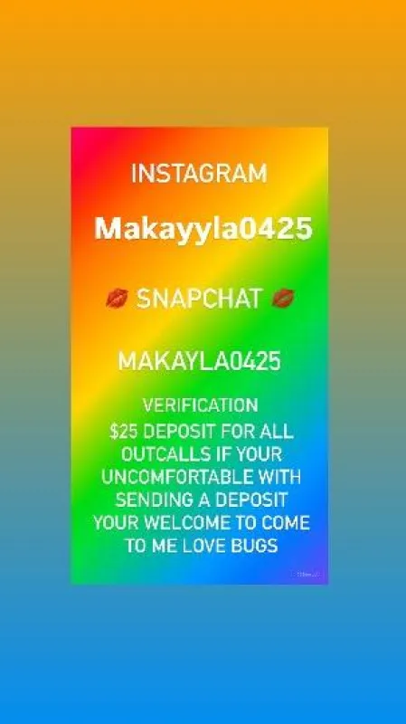 ββββββ NO BARE ββββββββ ALL OUTCALLS REQUIRE A 2β£5β£ DEPOSIT DONT CONTACT ME FOR A OUTCALL IF YOU DONT WANT TO SEND A DEPOSIT "RESPECTFULLY " INSTAGRAM : MAKAYYLA0425 IN TOWN FOR A GOOD TIME ! QV1β£5β£0β£ π SQU!RT!NG IS ONLY INCLUDE IN THE HH2β£0β£0β£ OR HR3β£0β£0β£ ZELLE, CASH APP , PAYPAL OR VENMO ONLY Welcome Gentlemenπ Get a taste of something New & Different! Explore your wildest fantasies and let us enjoy the momentπ When we meet, you will discover that I have a naturally warm personality which exudes sensuality. My physique is toned and voluptuous, accompanied by my silky smooth chocolate complexionπ₯° When youβre with me, your pleasure and comfort are my top priorityπ Donβt miss out on an experience you will not forget π¦ I am well - suited for honest & distinguished clientele who prefer in - depth encounters. I exclusively accommodate discerning gentlemen who are intrigued by someone vibrant & outgoing, yet mindful & discreet. Iβm a flirtatious, sweet & fun loving girl with a very wild and Fun side π OUTCALLS REQUIRE DEPOSITS No explicit texting, please be respectful & discreet. - Special outtings - Dinner dates - Fly me to you - Private parties - Facetime Shows -8β£5β£ i dont facetime for free you will provide a donation Explicit Content CALL ME NOW WHAT ARE YOU WAITING FOR !
